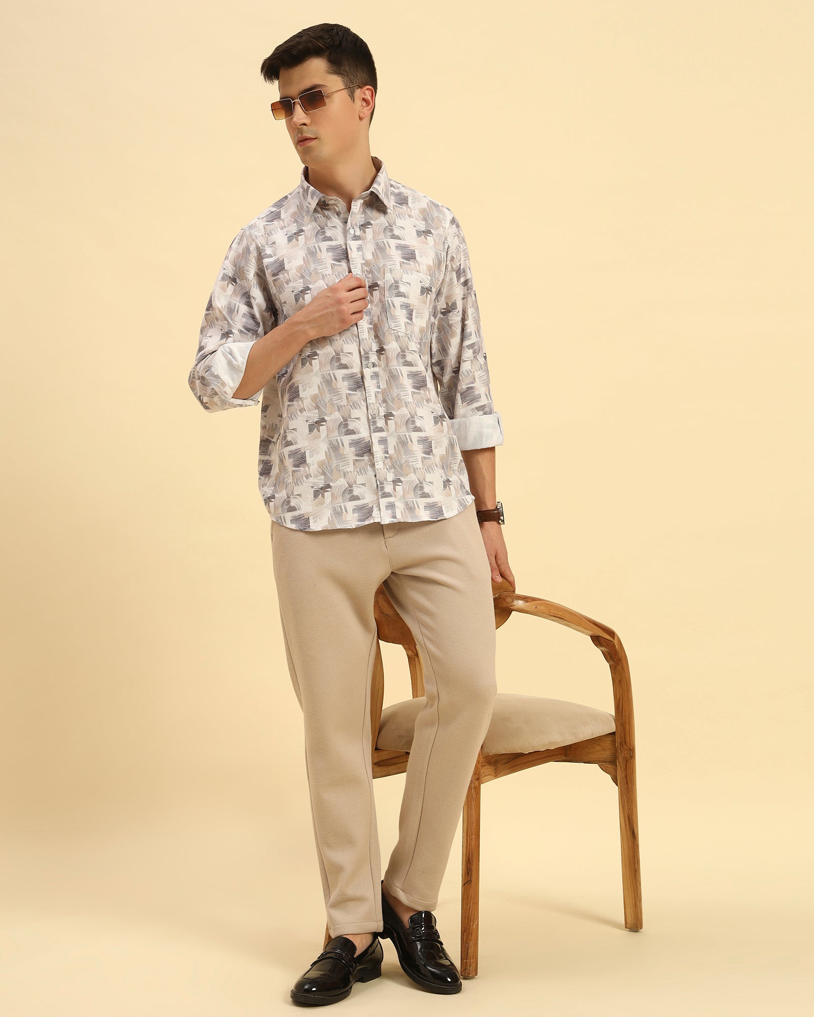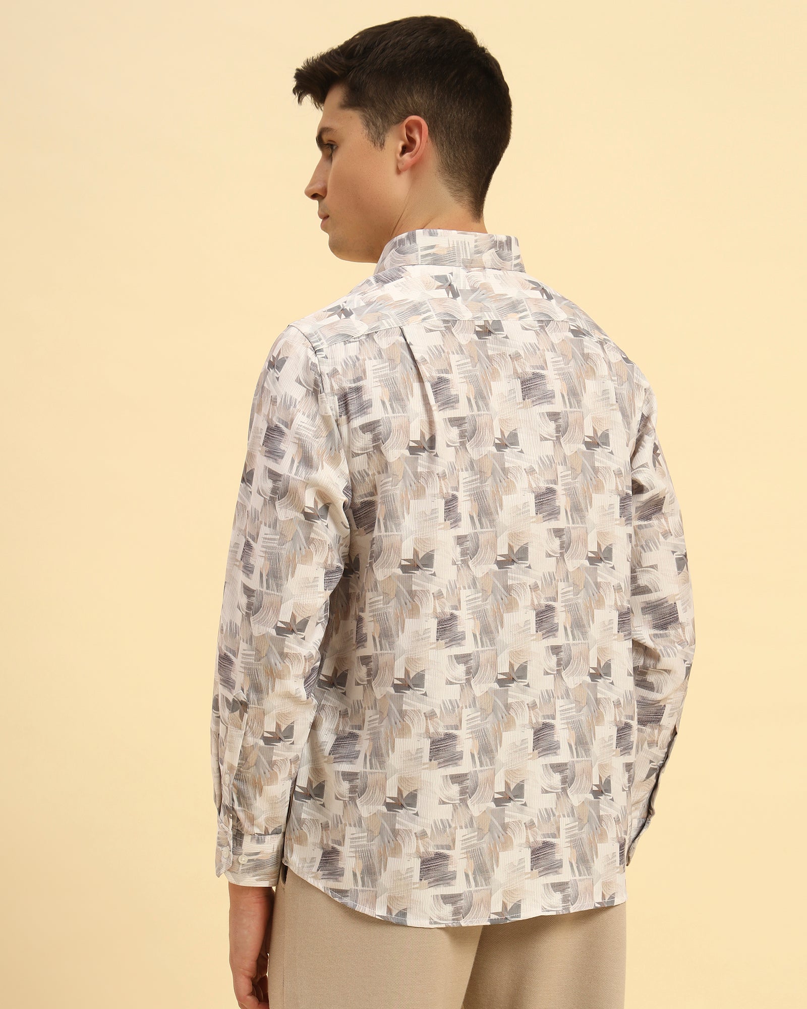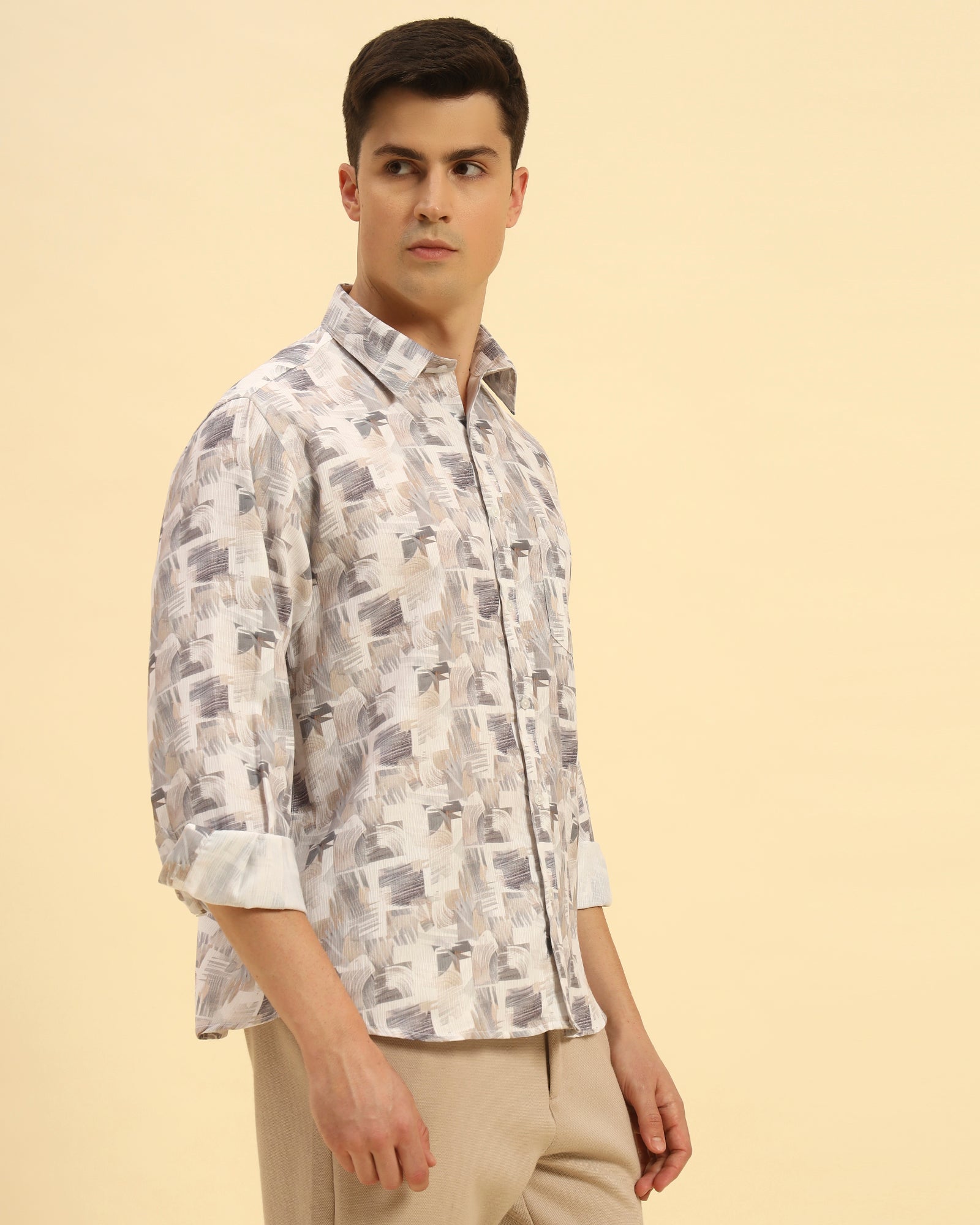 Where print meets sophistication. This shirt is crafted from an imported French cotton-viscose blend, delivering a lightweight, breathable feel with a subtle drape. The classic fit ensures timeless versatility, while the print brings individuality and a modern touch to everyday wear.