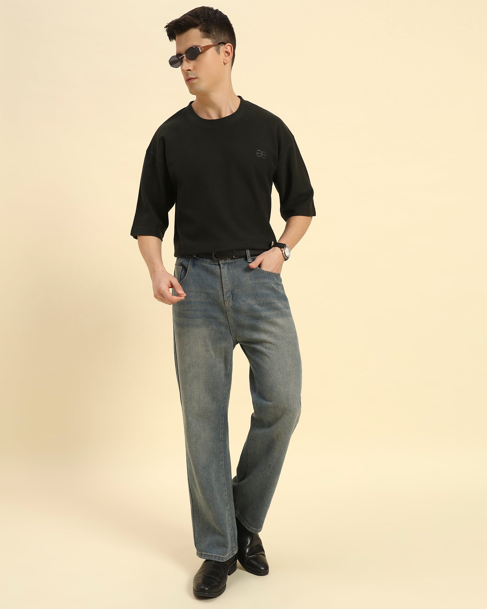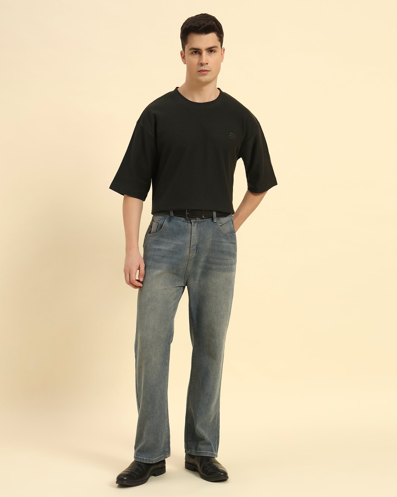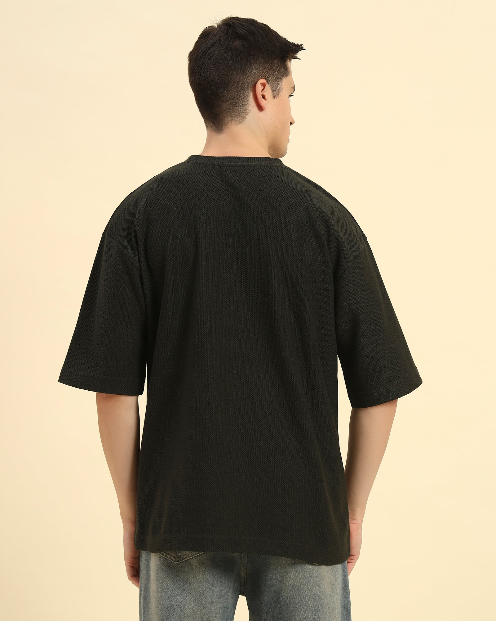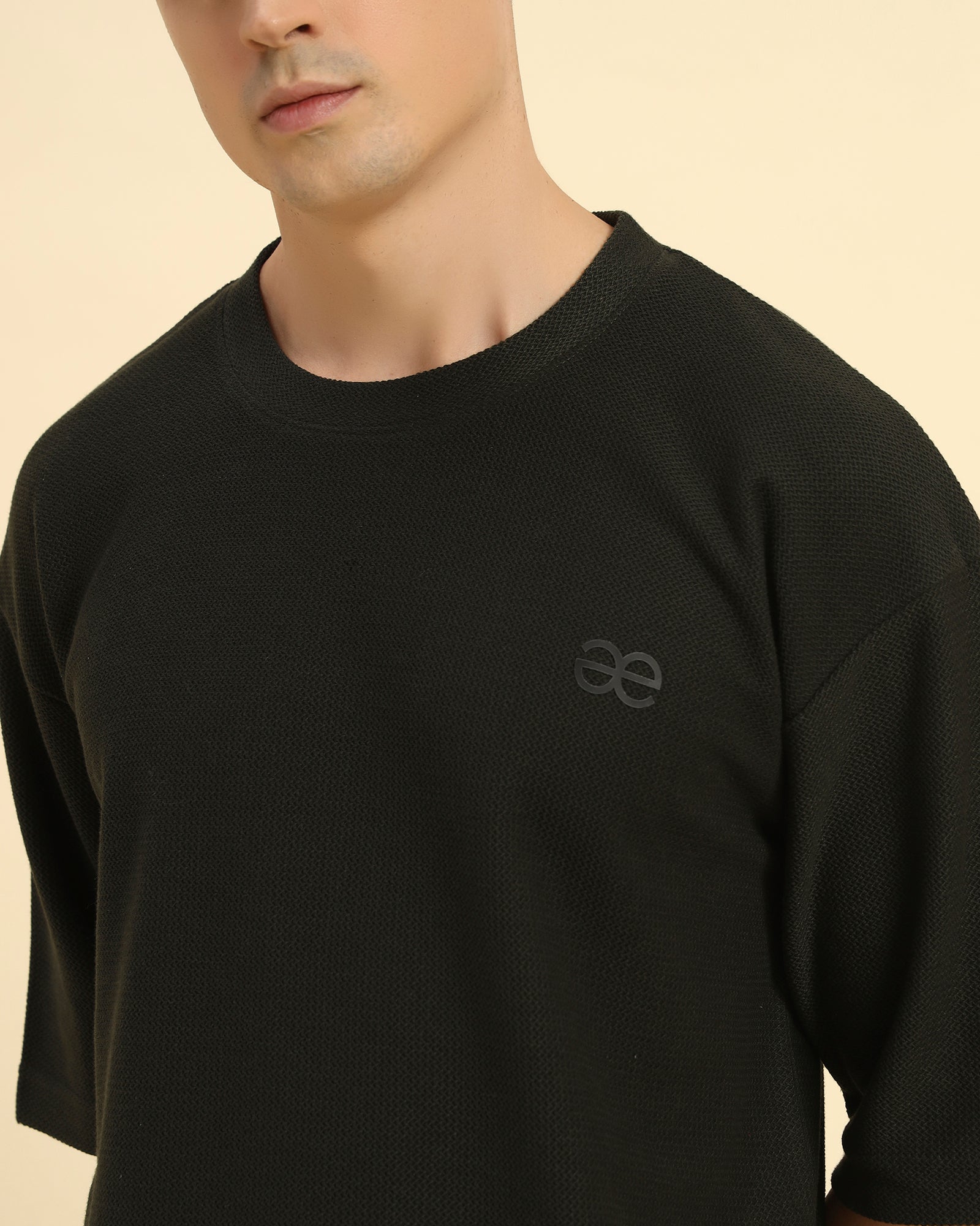 Oversized Jacquard Round Neck T-Shirt | Dark Green | Men