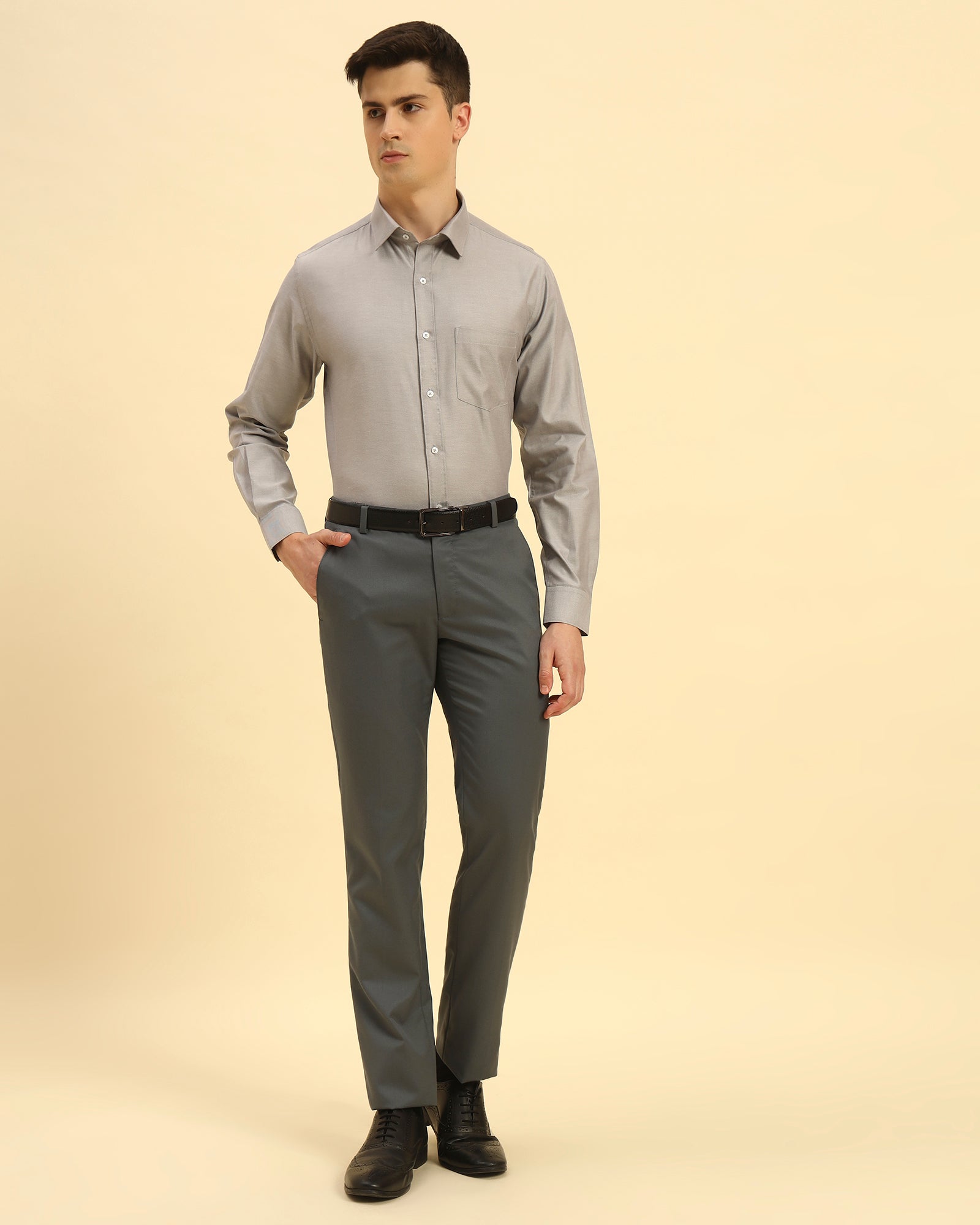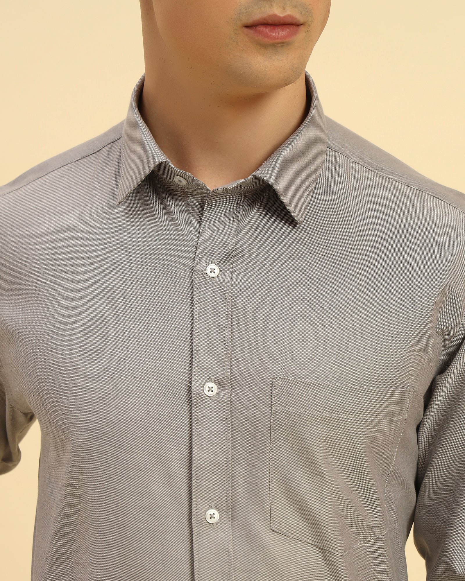 Effortless style, refined. This grey shirt is woven from a breathable cotton-polyester blend with a textured finish that adds depth and durability. The classic fit provides easy movement and all-day comfort, making it a versatile choice for work, evenings, or relaxed weekends.