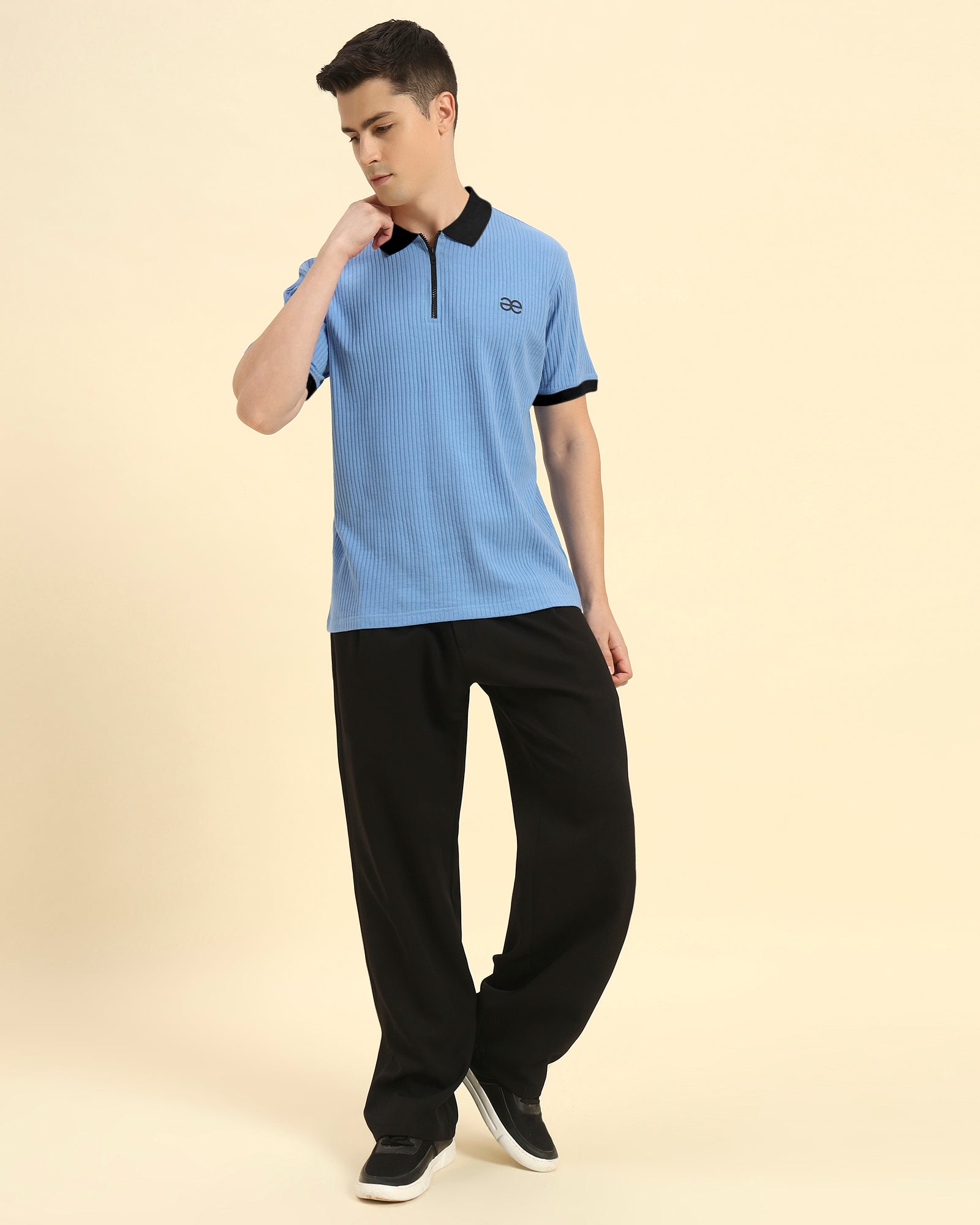 Premium Classic Fit Rib Knit Polo | Sky Blue