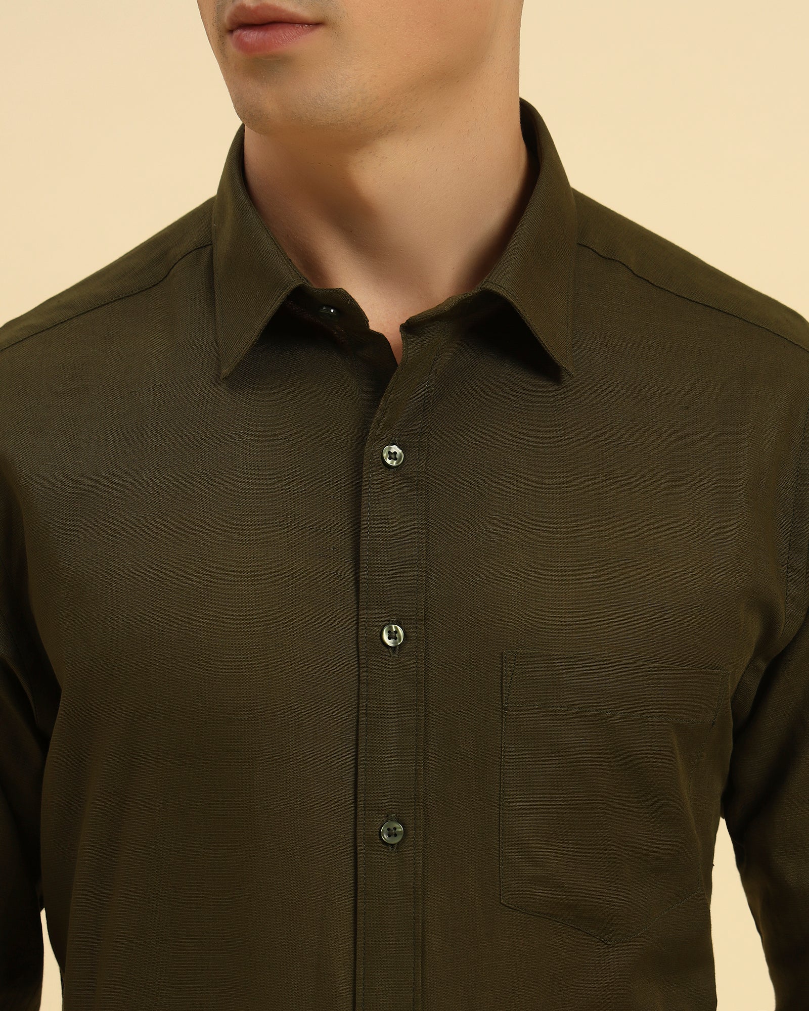 Relaxed Fit Italian Cotton-Linen Shirt | Dark Green